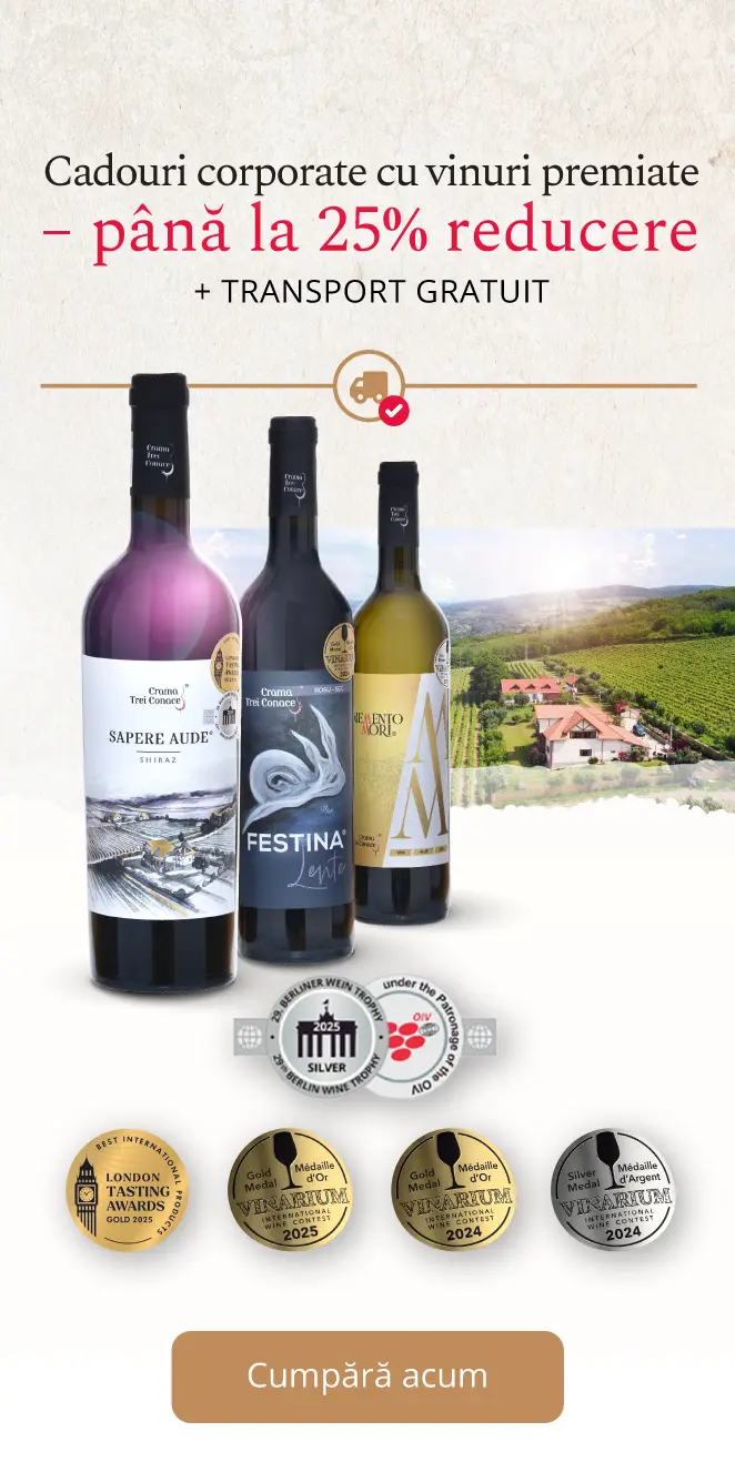 Crama 3 Conace înseamnă 65 hectare de viță-de-vie, în inima Podgoriei Dealu Mare. Cultivăm soiuri de vinuri românești și internaționale. Am preluat acesta vie în 2021 cu o viziune clara, bazata pe structura soiurilor existente, a solului, a expunerii terenului si ne-am dorit, sa aplicam cele mai moderne tehnologii de cultivare a vitei de vie si de vinificare a strugurilor. Viziunea noastra a prins viata prin itermediul vinurilor produse, care deja au fost recunoscute la nivel international. O alta etapa a “povestii” noastre se va regasi in urmatoarea etapa de dezvoltare a Domeniului 3 Conace, un loc unde BUCURIA, EMOTIA si PLACEREA se vor intalni la un Randez-Vous in Vie.