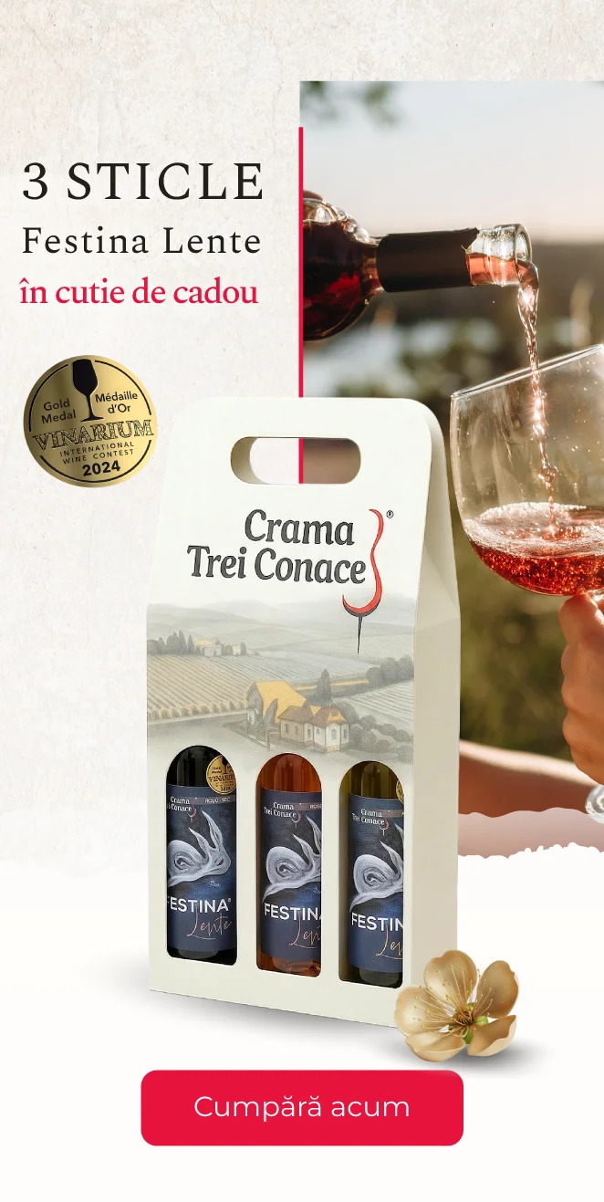 Crama 3 Conace înseamnă 65 hectare de viță-de-vie, în inima Podgoriei Dealu Mare. Cultivăm soiuri de vinuri românești și internaționale. Am preluat acesta vie în 2021 cu o viziune clara, bazata pe structura soiurilor existente, a solului, a expunerii terenului si ne-am dorit, sa aplicam cele mai moderne tehnologii de cultivare a vitei de vie si de vinificare a strugurilor. Viziunea noastra a prins viata prin itermediul vinurilor produse, care deja au fost recunoscute la nivel international. O alta etapa a “povestii” noastre se va regasi in urmatoarea etapa de dezvoltare a Domeniului 3 Conace, un loc unde BUCURIA, EMOTIA si PLACEREA se vor intalni la un Randez-Vous in Vie.
